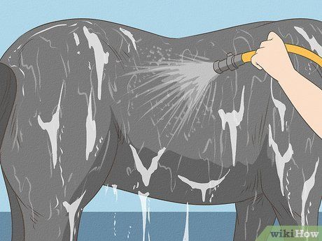 Dội sạch lông sau khi tắm. Sau khi tắm, bạn cần dội nước vào lông ngựa nhiều lần để loại bỏ hết xà phòng, vì dư lượng xà phòng có thể làm lông ngựa xỉn màu. Dư lượng xà phòng có thể làm tổn thương da và làm mất dầu tự nhiên.