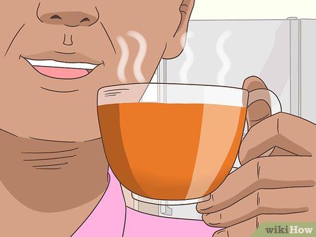 Thưởng thức đồ uống ấm. Nếu nước lọc không giúp giảm cảm giác đau rát trong họng, hãy thử thưởng thức một ly đồ uống ấm như trà thảo mộc. Nhiệt độ ấm của những loại đồ uống như trà có tác dụng làm dịu cảm giác đau rát trong họng nếu bạn thưởng thức từng ngụm một một cách từ từ. Đừng quên tham khảo ý kiến của bác sĩ trước khi chọn loại trà thảo mộc, đặc biệt là khi bạn đang mang thai, cho con bú, hoặc mắc các bệnh như tiểu đường hoặc tim mạch.