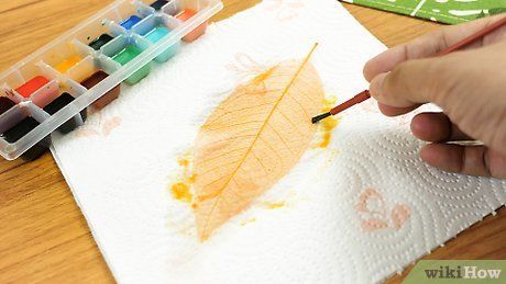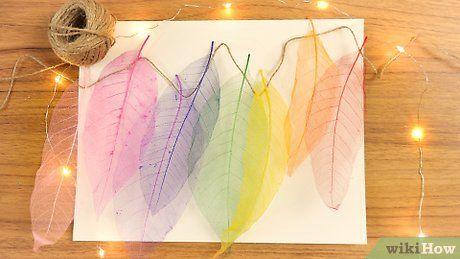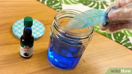 Nhuộm hoặc tạo màu lá. Pha màu thực phẩm hoặc màu nước với nước cho đến khi có sắc độ mong muốn. Ngâm lá trong dung dịch khoảng 20 phút, sau đó vớt ra. Rửa sạch lá và để lá khô theo cách tương tự: