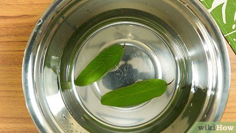 Rửa sạch lá. Đổ nước từ mát đến ấm vào chậu. Nhúng từng chiếc lá vào nước, sau đó để lên khăn giấy để loại bỏ thuốc tẩy và kết thúc quá trình tẩy.