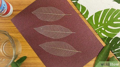 Sử dụng gân lá để trang trí sổ lưu niệm và thiệp. Dùng keo khô để dán gân lá vào thiệp và sổ lưu niệm, hoặc phết keo lỏng vào mặt sau của lá để dán.