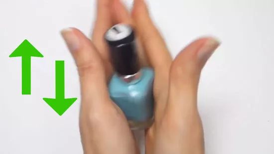 Giữ Lọ Sơn Giữa Hai Bàn Tay Trong Vài Phút. Hơi nóng từ lòng bàn tay sẽ làm cho sơn trở nên loãng hơn và giúp việc quét lên móng tay trở nên dễ dàng hơn. Hãy tránh lắc lọ sơn để không tạo ra bọt khí nhỏ.