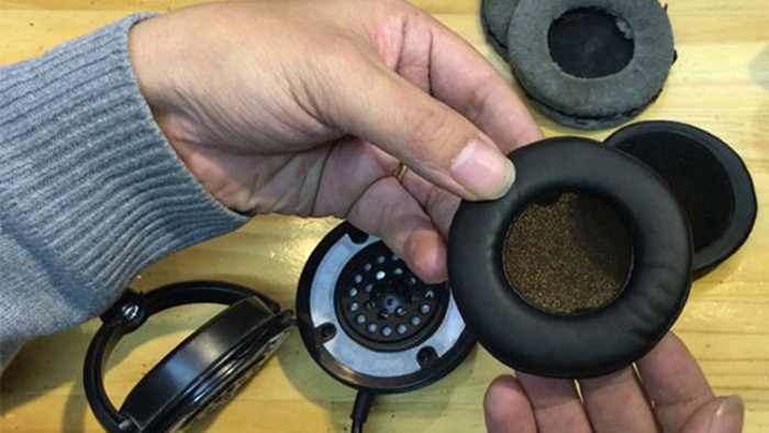 + Bước 1: Tháo phần đệm mút ra khỏi tai nghe.