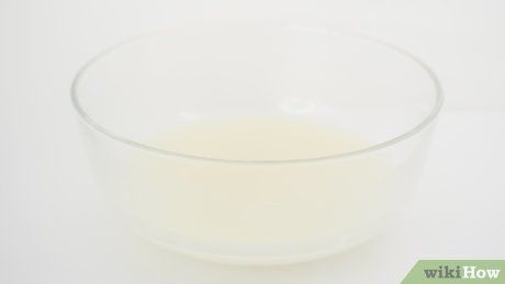 Kết hợp keo sữa và nước. Cho 1/2 cốc keo sữa (60ml) và 1/2 cốc nước (60ml) vào một bát khác. Khuấy đều cho đến khi hai nguyên liệu hoà quện vào nhau. Hỗn hợp sẽ có độ nhão nhưng vẫn dẻo.