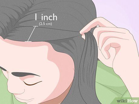 Lấy một phần tóc khoảng 2,5cm ở đỉnh đầu. Đảm bảo phần tóc không quá to để kẹp gần da đầu. Lấy phần tóc dày mất thời gian làm tóc khô và kẹp tăm không giữ được tóc dày.