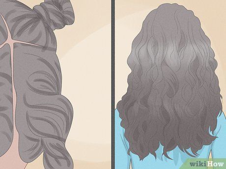 - Gội đầu để làm tóc ướt, sau đó tết thành bím hoặc nhiều bím, hong khô hoặc để qua đêm, sau đó tháo tóc.