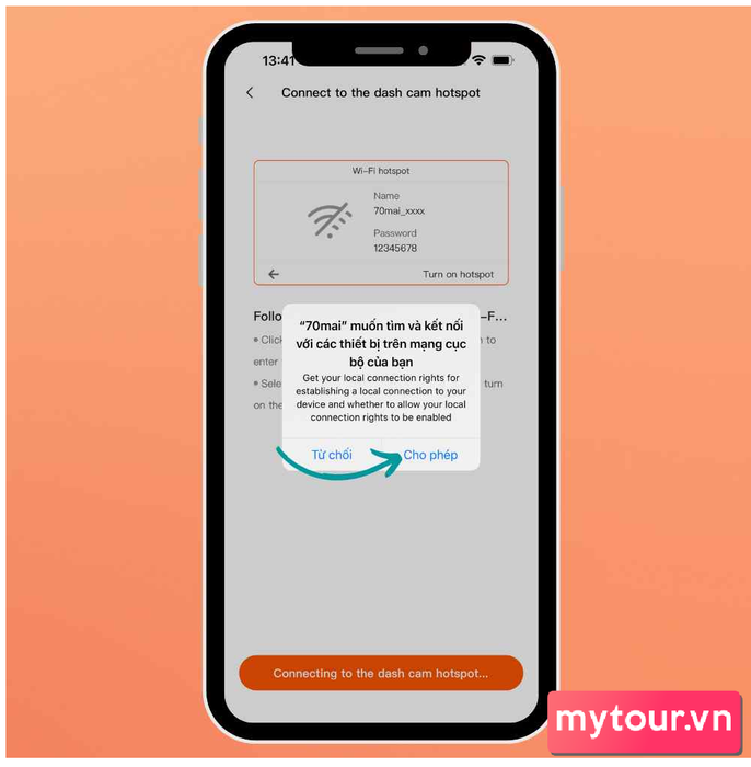 - Chọn sóng wifi phát ra từ camera 70mai → Kết nối