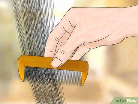 - Chải từng phần tóc có chiều dài khoảng 2,5 cm x 1 cm, bắt đầu từ gần da đầu và chải suốt đến ngọn tóc. Hãy nhớ làm sạch lược bằng nước nóng và khăn giấy sau mỗi lần chải xong một phần tóc.
