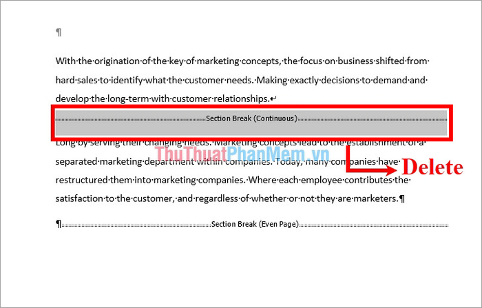 Bước 2: Để loại bỏ Section Break, bạn chỉ cần chọn Section Break mong muốn và nhấn Delete.