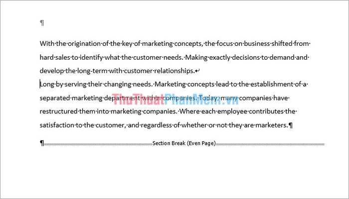 Lưu ý: Để chọn Section Break, hãy đặt con trỏ chuột vào đầu Section Break, giữ phím Shift và nhấn End.