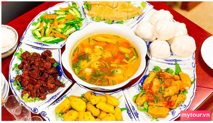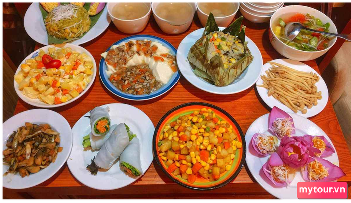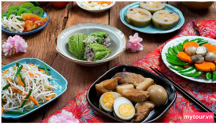- Món xôi: Luôn xuất hiện trong bữa tiệc mặn và chay, xôi không thể thiếu trên bàn ăn ngày Tết, có thể là xôi đậu xanh, xôi gấc, xôi lá dứa,.