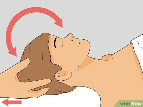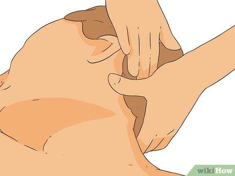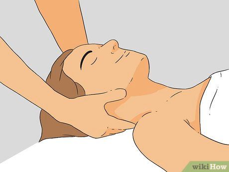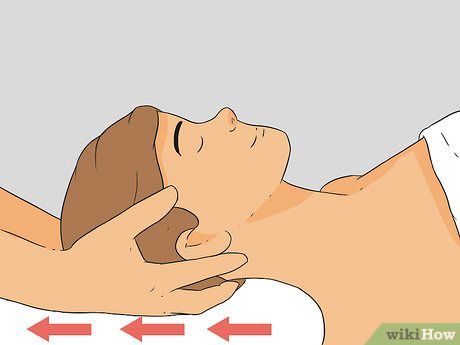 Massage Cổ. Áp sát lòng bàn tay vào cổ và nhẹ nhàng xoa bằng ngón cái một bên và các ngón còn lại một bên khác. Di chuyển lên xuống dọc theo cổ. Cố gắng di chuyển da thay vì chà xát tại chỗ.