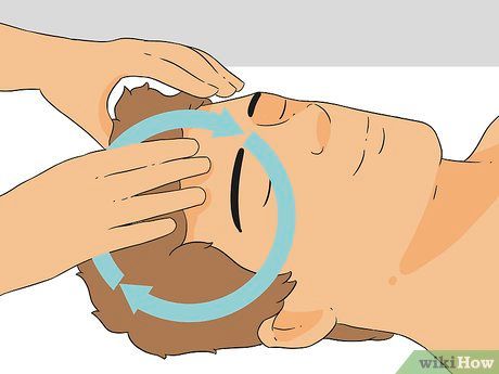 Massage Đầu Bằng Ức Bàn Tay. Dùng ức bàn tay lướt dưới lớp tóc gần thái dương. Áp dụng lực nhẹ và massage từ dưới lên trên. Kỹ thuật này có thể áp dụng cho cả massage tự nhiên và massage cho người khác.