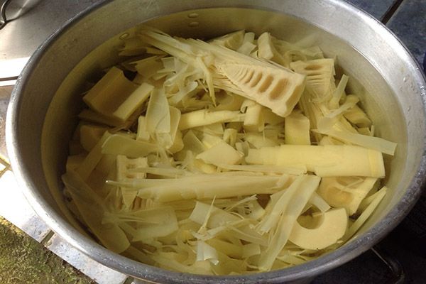 Với măng tươi, hãy xé sợi và luộc kỹ. Sau đó, xào măng với hành tím băm, ớt bột, và bột canh để tạo hương vị thơm ngon và đậm đà.