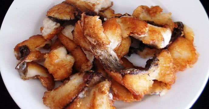 Cá được chiên vàng giòn từng lớp khi ăn