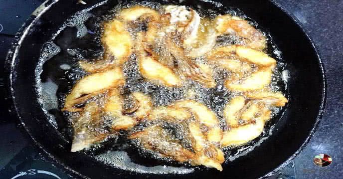 Cá chiên ngập dầu để giữ được vị giòn
