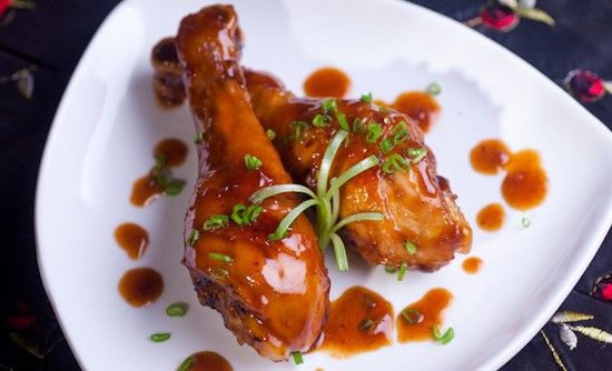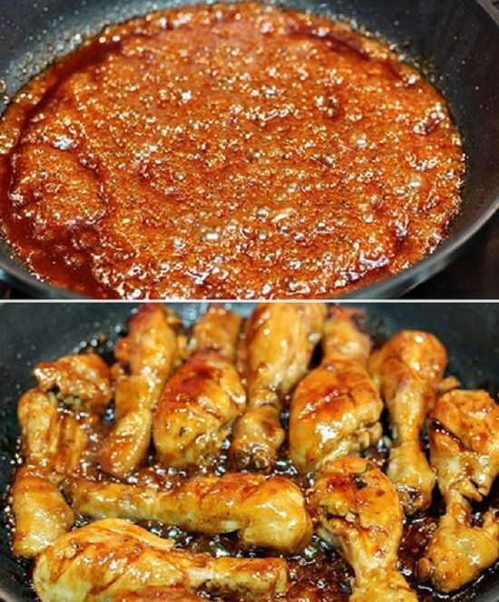– Hâm nóng dầu trong chảo, trộn tương đậu nành, ớt đỏ, nước sốt cà chua, sốt ớt cay, giấm táo và nước lọc trong một bát, đổ vào chảo và khuấy đều. Sau đó, cho đùi gà đã chiên vào chảo, đảo tay để đảm bảo thịt chín đều và nước sốt sánh lại.