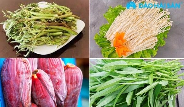 Chọn rau ưa thích: Để bữa lẩu cá hồi măng chua thêm phần phong phú, hãy lựa chọn những loại rau như rau muống, hoa chuối, đậu bắp, rau nhút và các loại nấm.