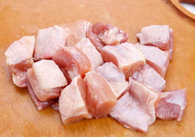 Gà tươi ngon: Sau khi rửa sạch bằng muối và nước lạnh, bạn chia thành từng khúc nhỏ và ướp lạnh cùng ít hạt nêm, muối trong 15 phút để thịt gà thấm gia vị. Phải nhớ để riêng phần cổ và cánh để làm nước dùng.