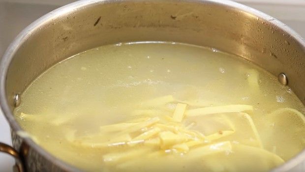 Trong quá trình hầm, hãy nhanh chóng vớt bỏ bọt. Sau 90 phút, lọc lấy nước làm nước dùng.