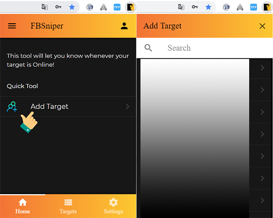Bước 6: Chọn 'Add Target', sau đó bấm chọn người mà bạn muốn theo dõi và bấm 'OK'. Nếu bạn muốn bỏ theo dõi ai đó, chỉ cần bấm vào người đó, chọn 'Operations' và 'Remove this targets'.
