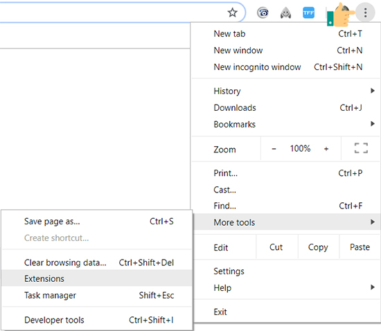 Bước 2: Khởi động trình duyệt Chrome, nhấn vào biểu tượng ba chấm ở góc trên bên phải màn hình, chọn 'More tools' và sau đó chọn 'Extensions'.