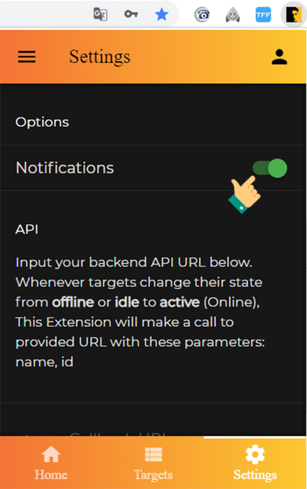Bước 7: Cuối cùng, truy cập vào 'Settings' và bật chức năng 'Notifications' để kích hoạt thông báo từ tiện ích.
