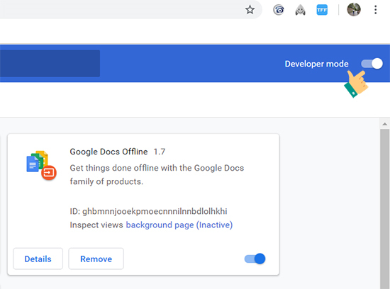 Bước 3: Di chuyển thanh trượt ở phía góc trên bên phải màn hình để mở chế độ 'Developer mode', chế độ dành cho những nhà phát triển.
