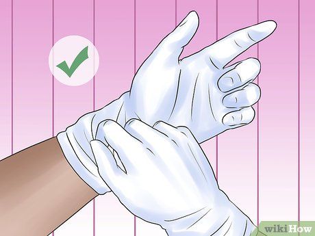 Đeo găng tay. Để bảo vệ da tay, đeo găng tay khi thực hiện quá trình nhuộm tóc. Điều này giúp tránh tình trạng nhuộm hoặc tẩy tóc dính vào da tay và gây kích ứng.