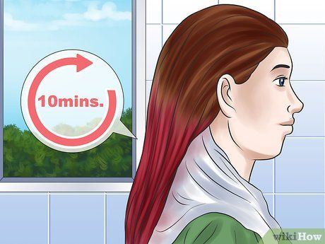 Để thuốc nhuộm ngấm vào tóc. Giữ thuốc trên tóc theo thời gian được ghi trong hướng dẫn để tóc lên màu. Không để thuốc trên tóc quá lâu.