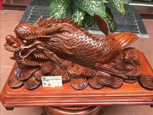 Tượng gỗ Cá chép hóa Rồng mang lại may mắn và thành công trong công việc, làm tăng sự tự tin và khí thế phấn đấu.