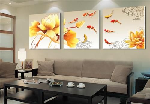 Tranh cá chép nên treo ở vị trí lợi nhất trong phòng khách gia đình, không chỉ tạo điểm nhấn cho ngôi nhà mà còn mang lại may mắn và tài lộc cho gia chủ.