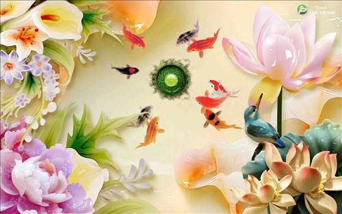 Bức tranh cá chép và hoa sen mang ý nghĩa 'dư dả liên tục', tượng trưng cho sự thanh cao và tinh khiết, giúp điều hòa khí vượng và ngăn chặn những điều xấu.