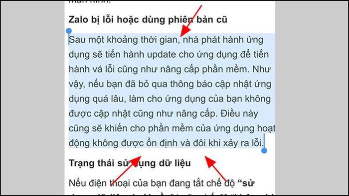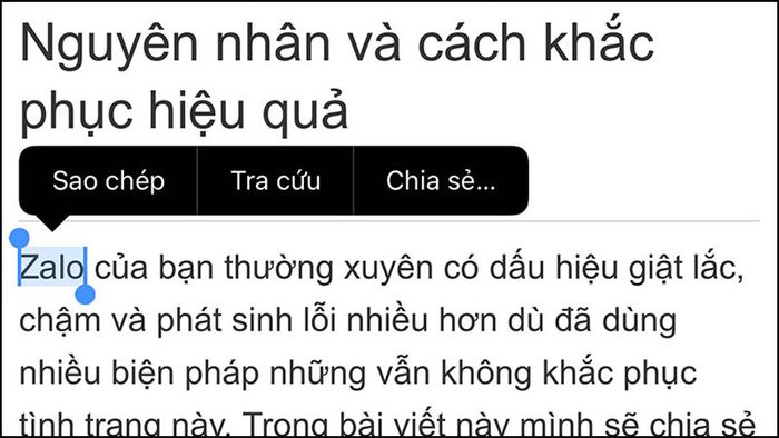 Bước 1: Tìm nội dung muốn sao chép > Nhấn và giữ khoảng 2 giây vào từ đầu tiên trong đoạn muốn sao chép hoặc đánh dấu văn bản bạn muốn sao chép bằng: