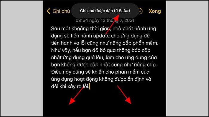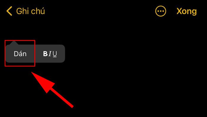 Bước 3: Di chuyển đến nơi muốn dán > Chạm và giữ trong khoảng hai giây > Chọn Dán (Paste).