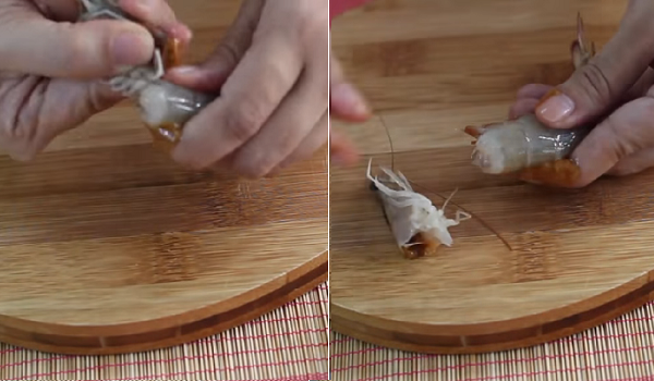 Bí quyết sơ chế tôm sú bằng cách lấy chỉ phần thịt tôm