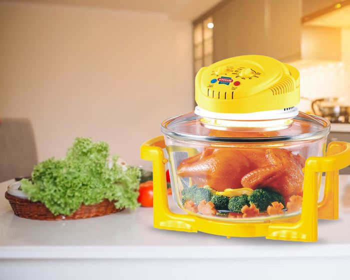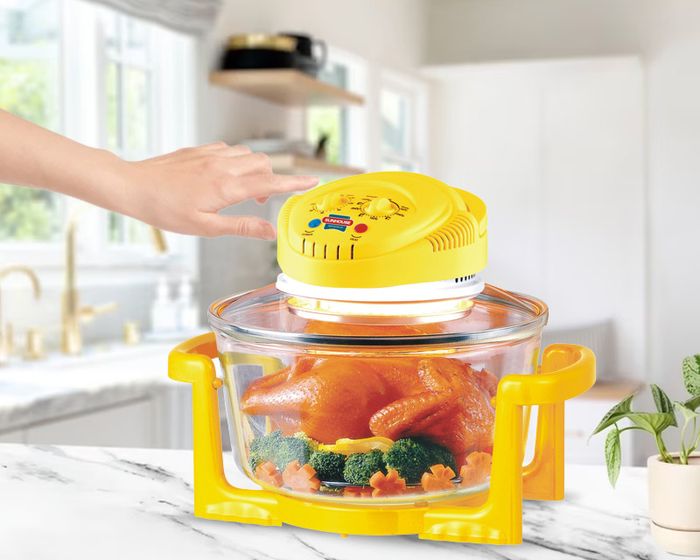 Lò nướng thủy tinh Sunhouse với thiết kế nhỏ gọn, có tay cầm cách nhiệt ở cả hai bên, giúp dễ dàng di chuyển, là sự lựa chọn hoàn hảo cho gia đình nhỏ.