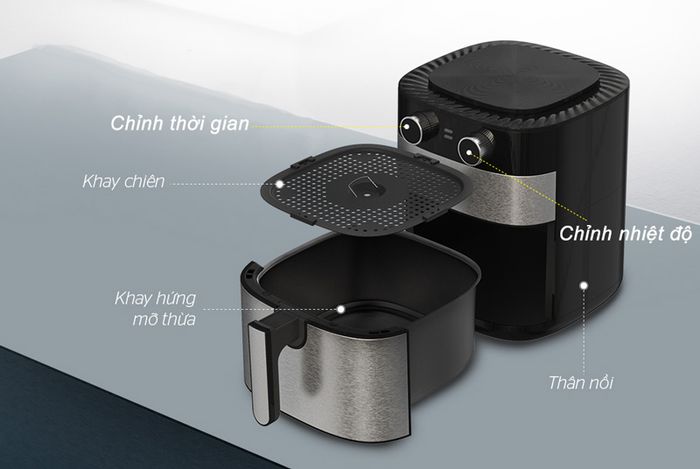 - Thân nồi được thiết kế vững chắc và chịu nhiệt, là trái tim của nồi chiên.