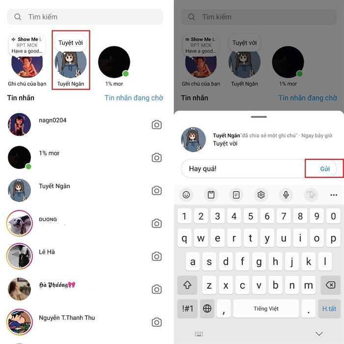 Ngoài ra Instagram còn cho phép người dùng trả lời những ghi chú mà bạn bè họ chia sẻ một cách dễ dàng nữa. Và đây sẽ là cách trả lời ghi chú trên Instagram: