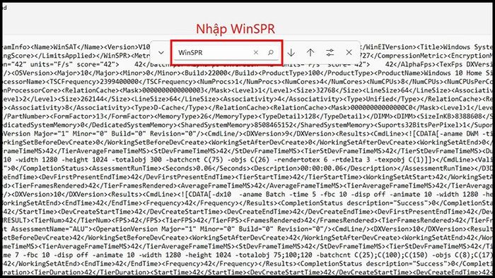 Bước 4: Sử dụng tổ hợp phím Ctrl+F, nhập WinSPR để nhanh chóng tìm điểm đánh giá.