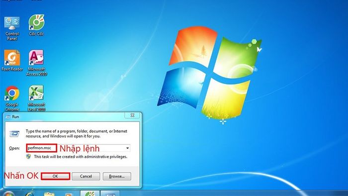 Bước 1: Nhấn tổ hợp phím Windows+R, nhập perfmon.msc, và nhấn OK để mở Performance Monitor.