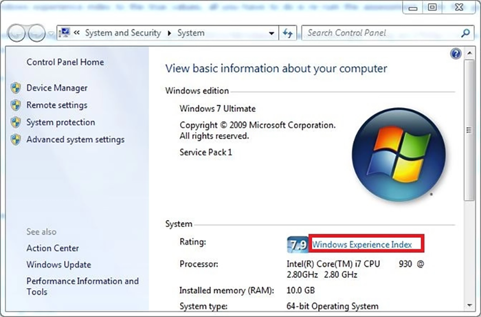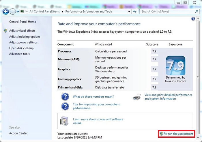 Windows Experience Index đánh giá từ 1.0 đến 7.9