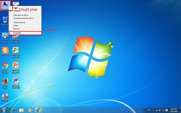 Bước 1: Trên màn hình Desktop, click chuột phải vào biểu tượng Computer.