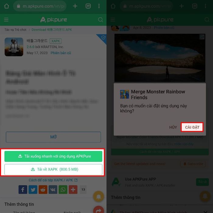 Bước 3: Tiếp theo, ứng dụng sẽ chuyển bạn đến giao diện khác với 2 lựa chọn: Tải xuống nhanh với APKPure hoặc Tải về XAPK. Để tải xuống trực tiếp với trình duyệt, hãy chọn Tải về XAPK. Cuối cùng, chờ quá trình tải xong và cài đặt file bạn đã tải.