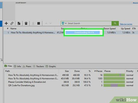 Chờ quá trình tải khởi động. Chương trình torrent sẽ bắt đầu kết nối với seeder. Tốc độ tải sẽ tăng dần và thanh tiến trình sẽ di chuyển về 100%.