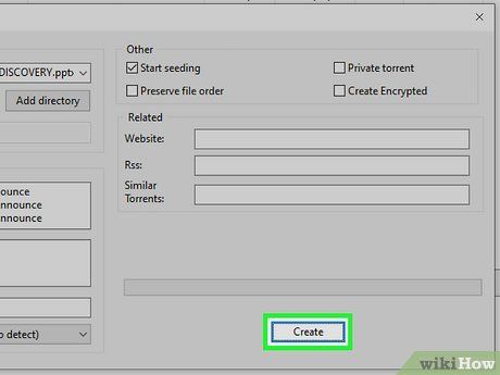 Bắt đầu seed. Nhấp chuột vào nút Tạo và quá trình seed sẽ bắt đầu. Đảm bảo tiếp tục seed cho đến khi có đủ lượng seeder tiếp cận tập tin.