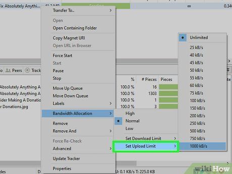 Thiết lập giới hạn tải lên. Nhiều chương trình torrent cho phép thiết lập giới hạn tải lên.