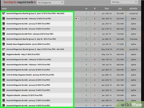 Tìm tập tin bạn muốn. Sử dụng chức năng tìm kiếm trên torrent tracker để tìm kiếm tập tin bạn muốn tải về. Tracker sẽ hiển thị danh sách kết quả tương ứng với từ khóa bạn nhập. Có nhiều kết quả sẽ được hiển thị, đặc biệt là với những tập tin phổ biến.