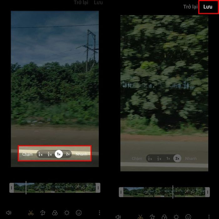 Bước 2: Tùy thuộc vào chất lượng video, bạn có thể có 3 hoặc nhiều hơn các lựa chọn để điều chỉnh tốc độ video của mình. Trên điện thoại, có 4 lựa chọn là 0,25x, 0,5x, 1x và 2x, tùy thuộc vào nhu cầu sử dụng của bạn. Sau khi chỉnh sửa xong, nhấn nút Lưu để lưu lại video đã chỉnh sửa.