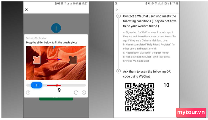 Bước 4: Thách thức nhỏ sẽ xuất hiện để đảm bảo tính an toàn. Hãy xác nhận mã Captcha bằng cách di chuyển mảnh còn thiếu vào vị trí chính xác. Khi bạn hoàn thành và xác nhận mã Captcha chính xác, bạn sẽ nhận thông báo về việc xác nhận an toàn thành công và tiếp tục với cách dùng WeChat để tạo ảnh AI với Miaoya dưới đây.